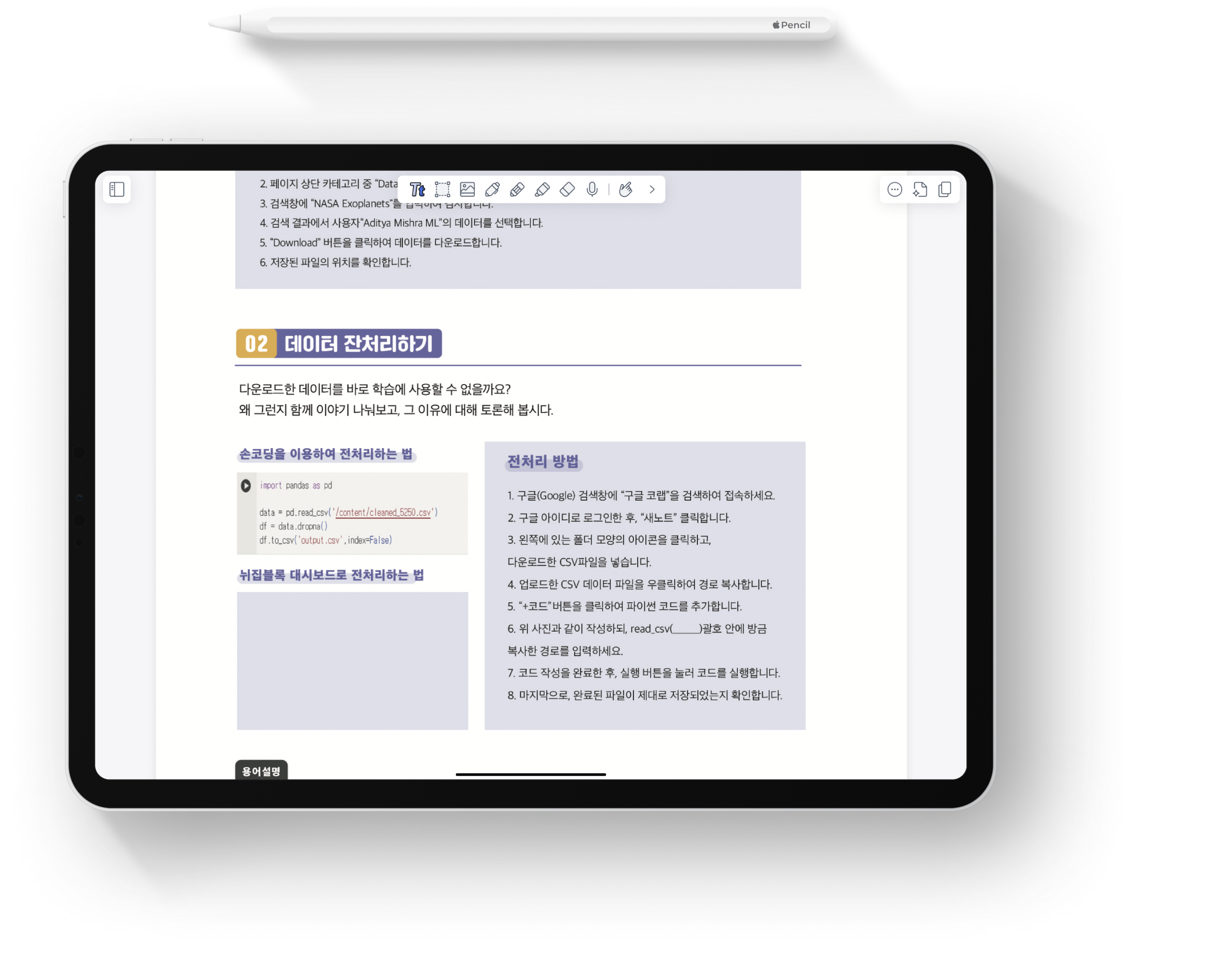 PDF만 제공되며, 아이패드 또는 갤럭시탭와 더불어 기타 악세서리는 제공되지 않음.
