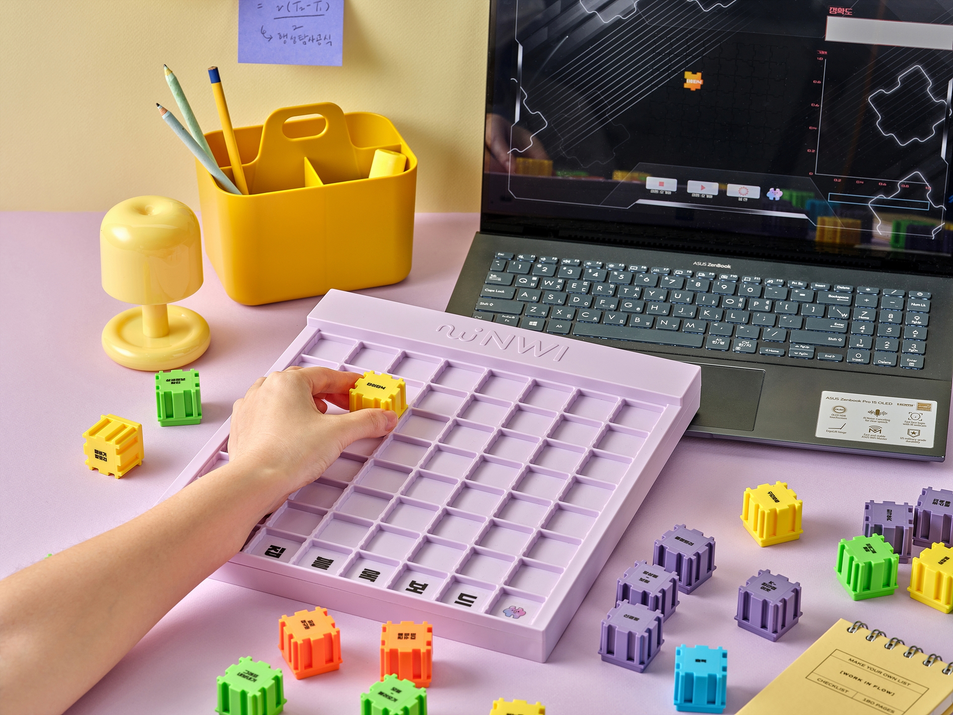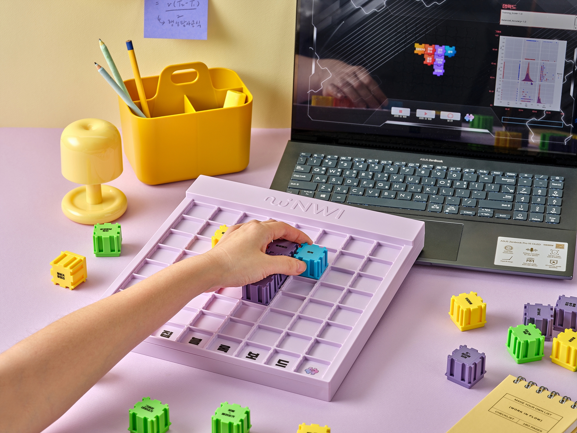 노란색 입력블록을 원하는 위치에배치하세요. 블록에 표시된 타겟값과특징값을 선택하여 블록 위에 배치하세요.보드가 자동으로 인식합니다.
